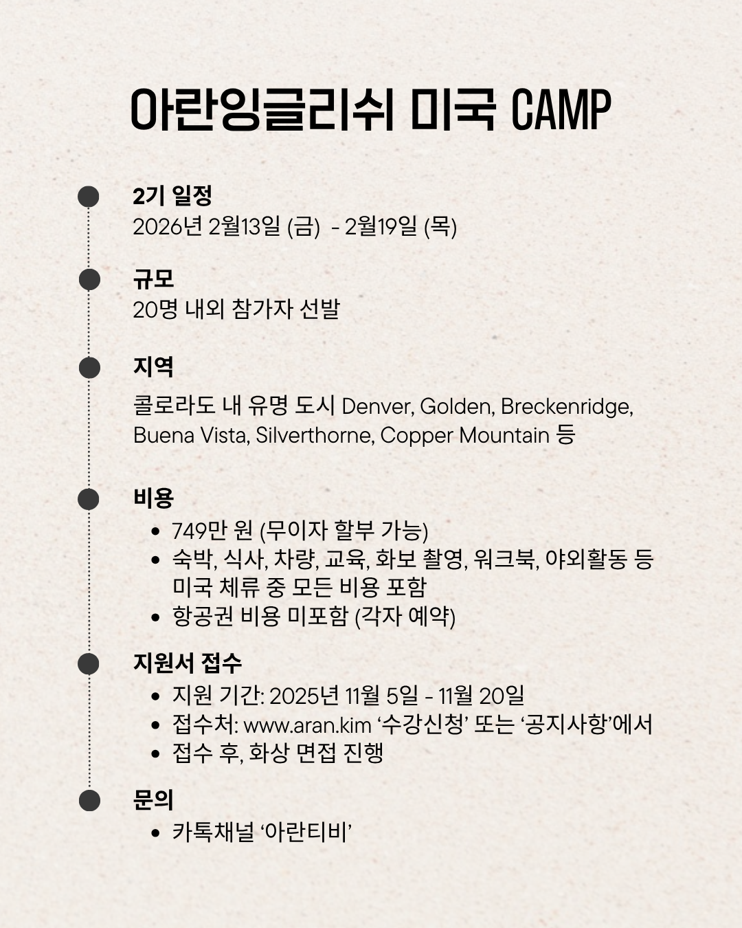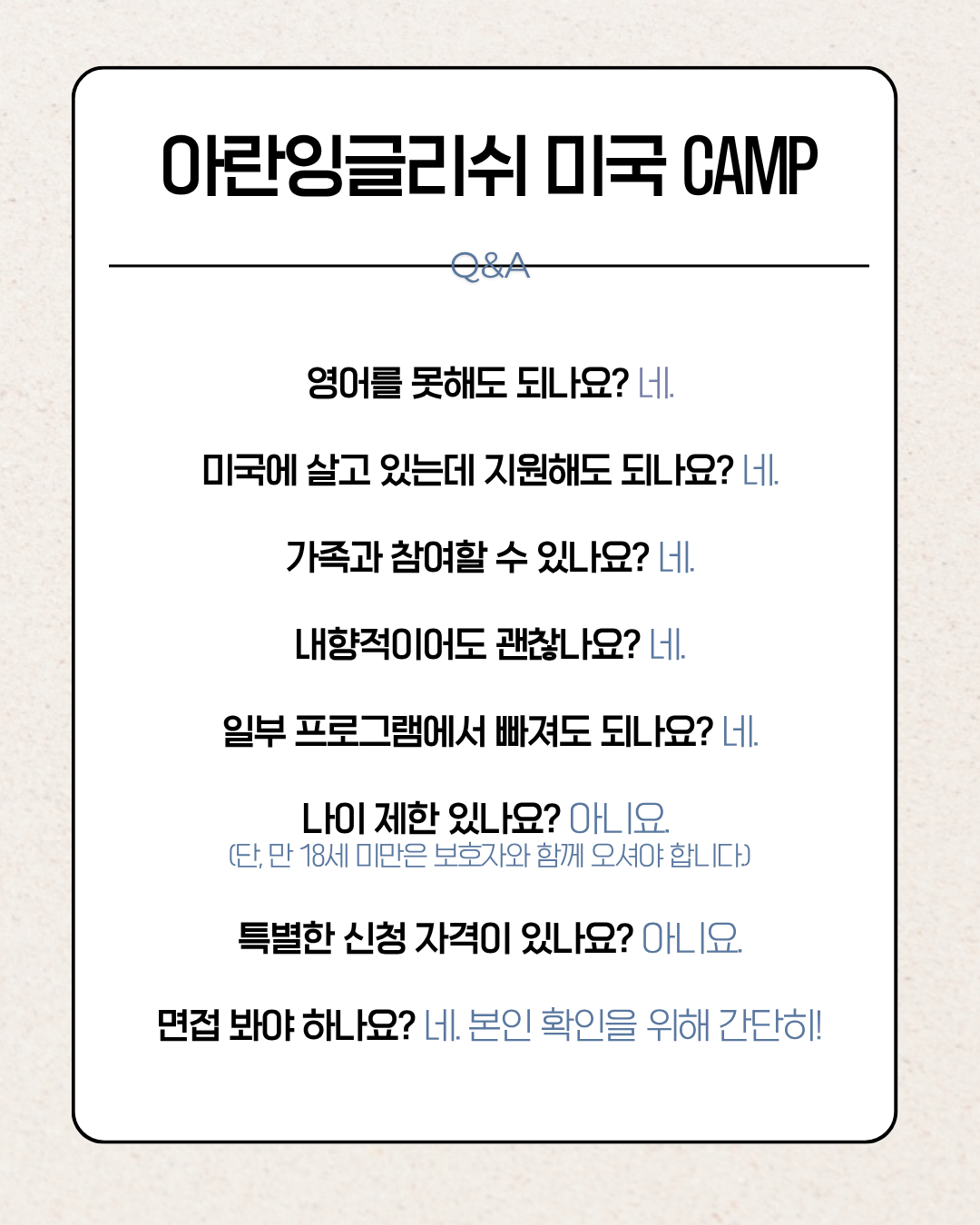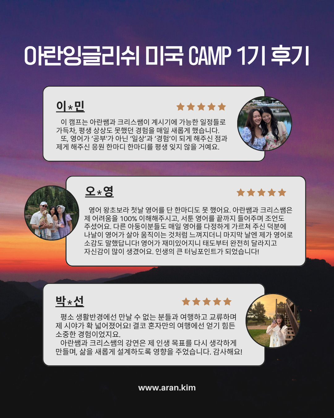 아란잉글리쉬 미국 CAMP [1기] 학생 후기 영상: