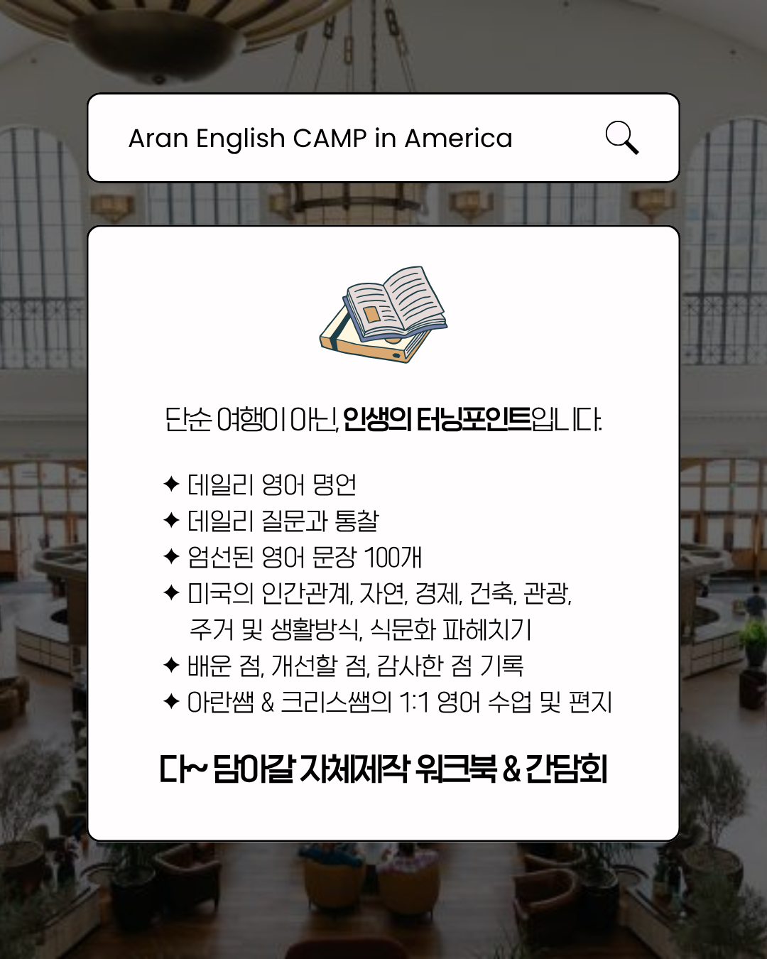 아란잉글리쉬 미국 CAMP [1기] 1일차 영상: