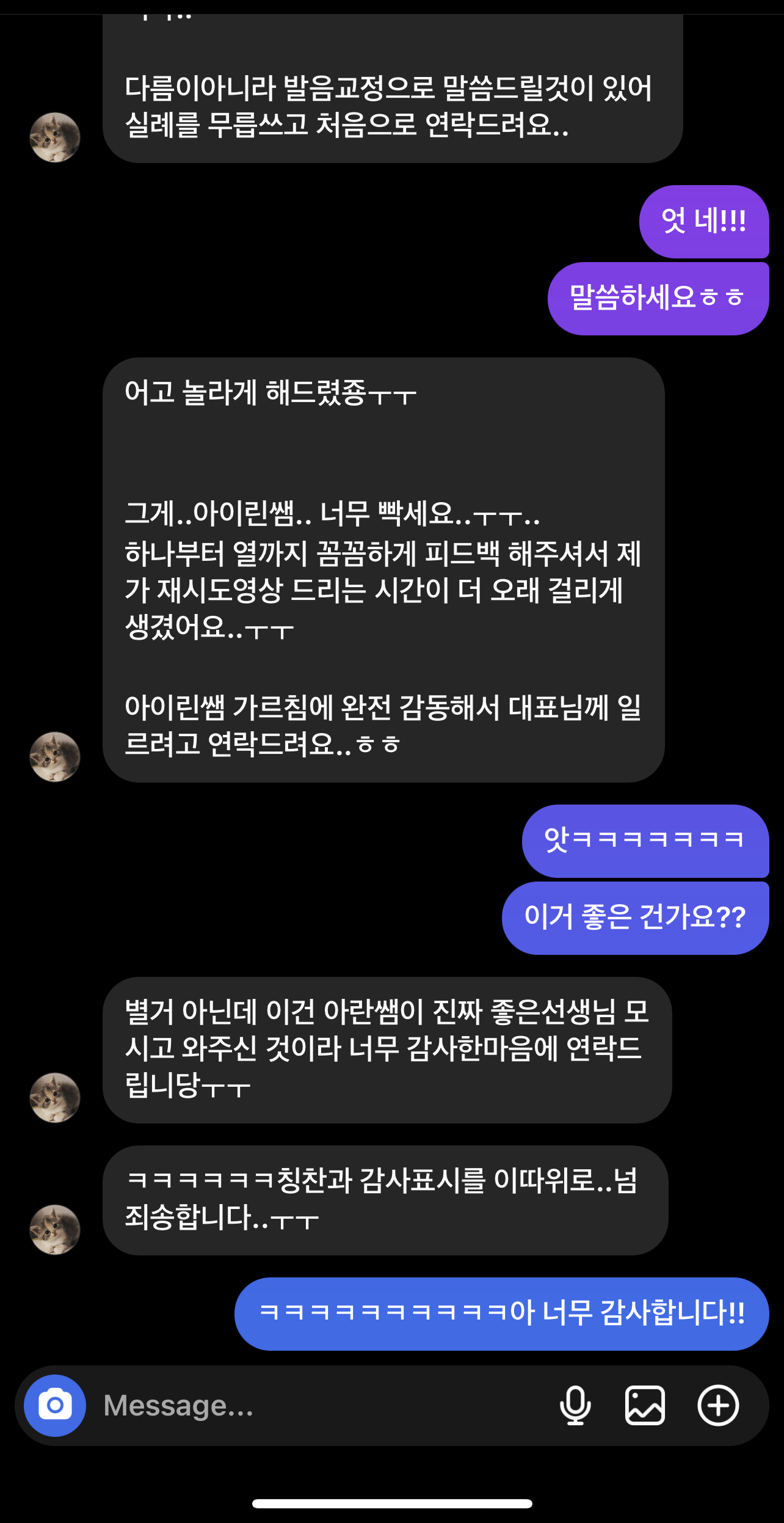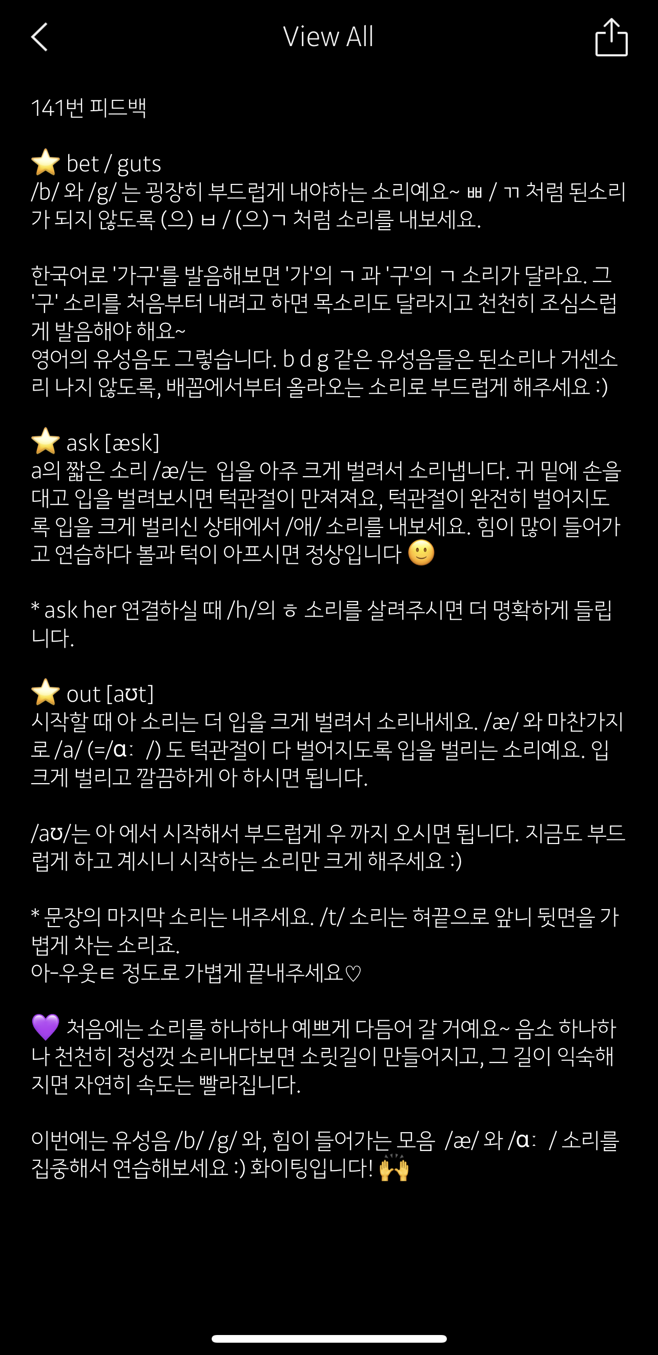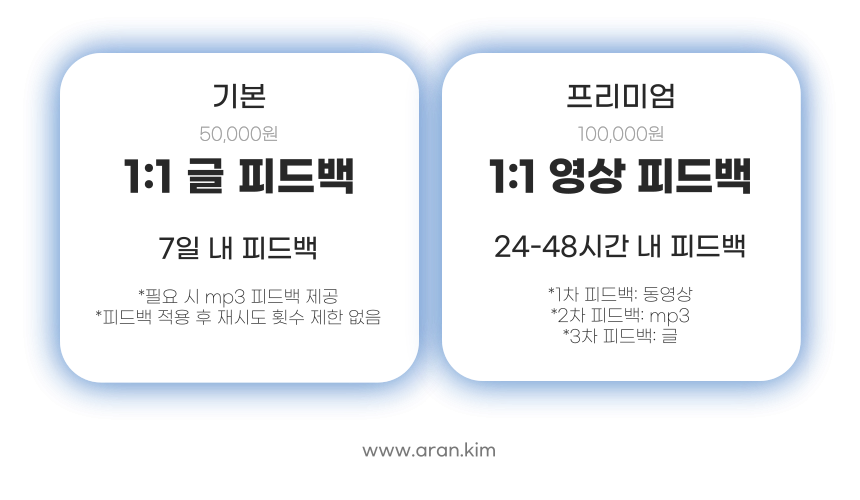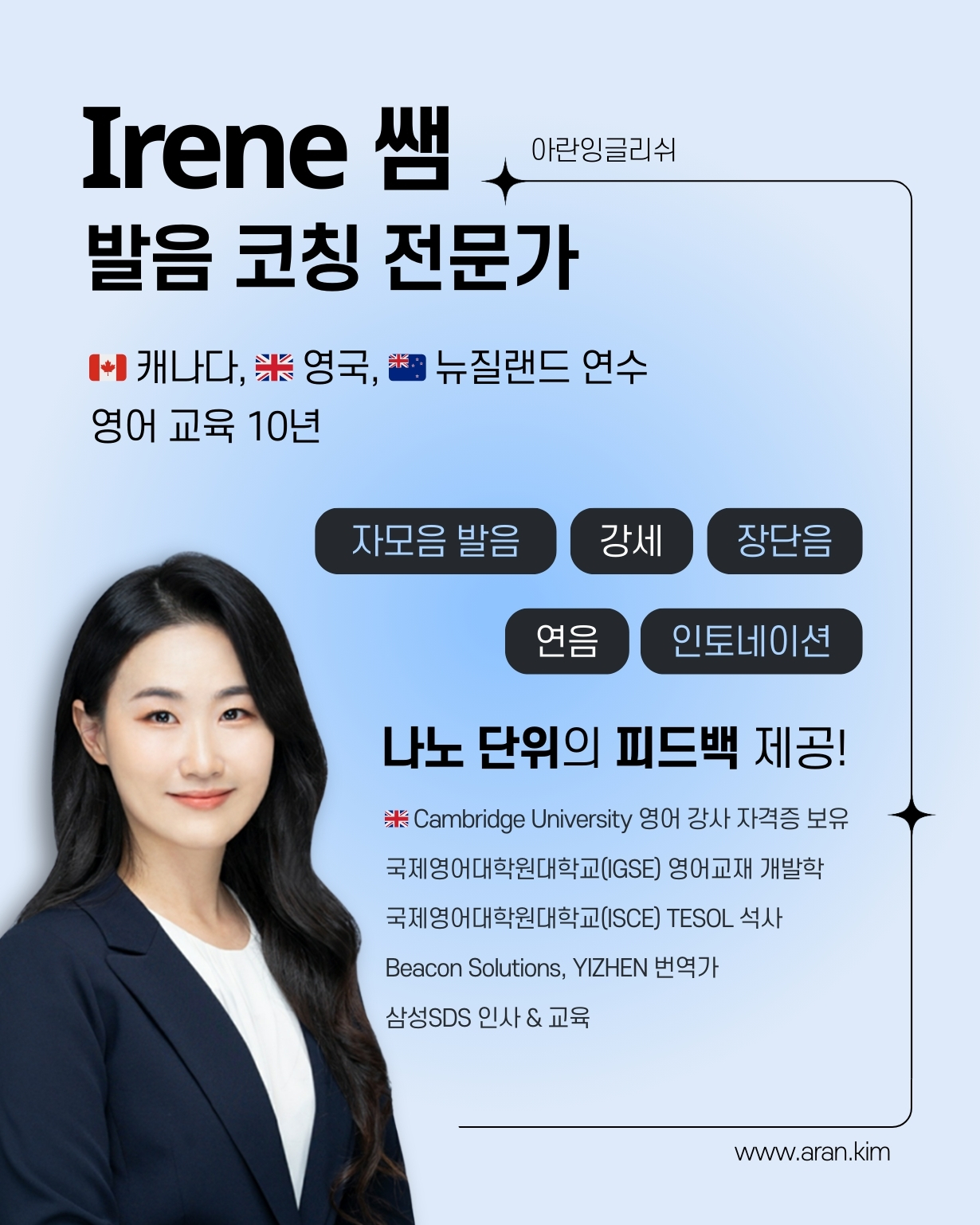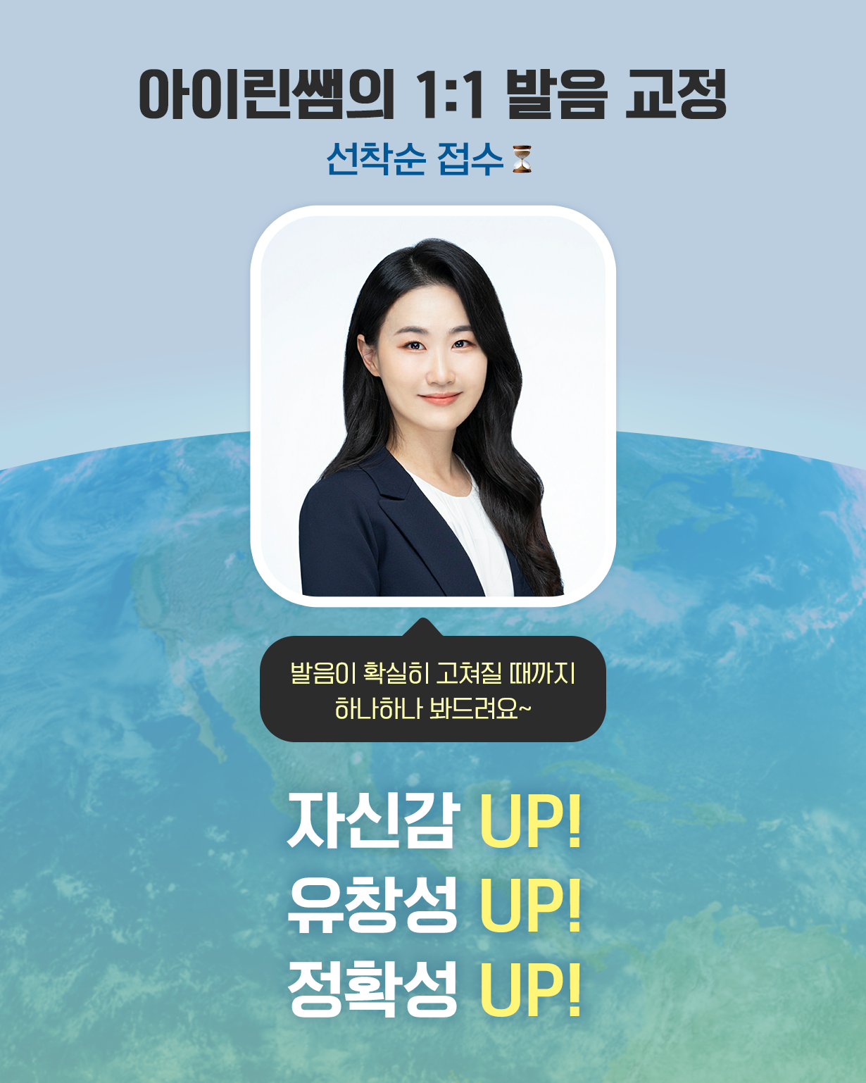 * 1:1 발음 교정은 [아란잉글리쉬 회화 줘패기] 수강생 대상 서비스입니다.